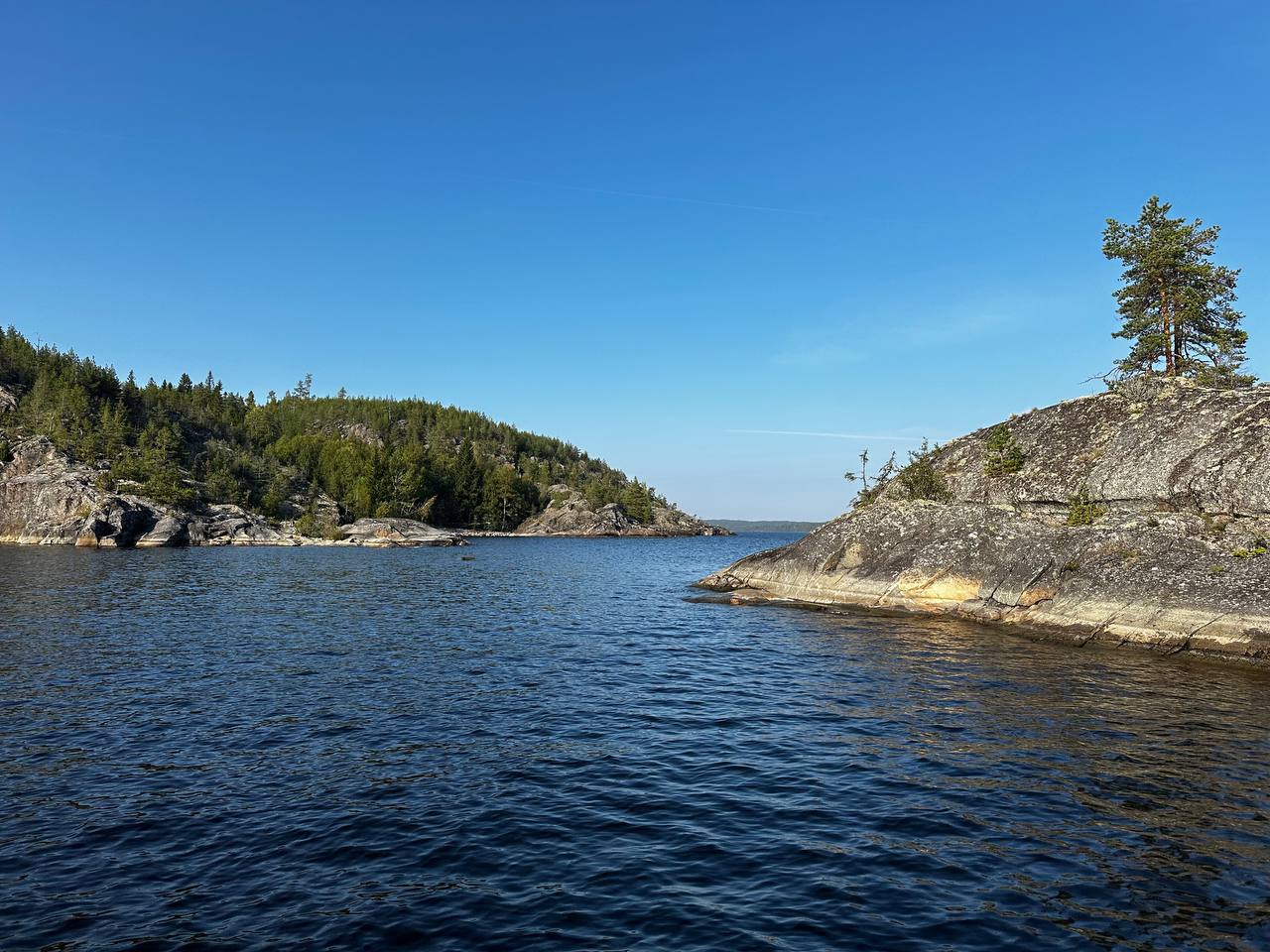 Залив Кирьявалахти — один из самых красивых заливов парка с высокими скальными берегами. Удобная точка для старта водных маршрутов, популярное место среди байдарочников.