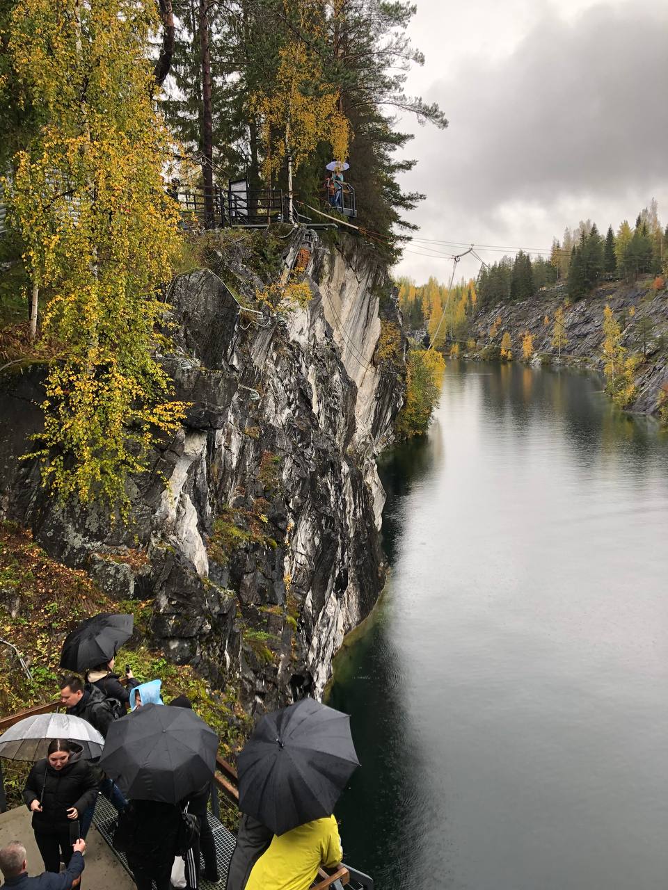 Дополнительно и отдельно оплачиваются: подземный маршрут, зиплайн, тарзанка, лодки. Цены на дополнительные активности — актуальные на официальном сайте ruskeala.ru.