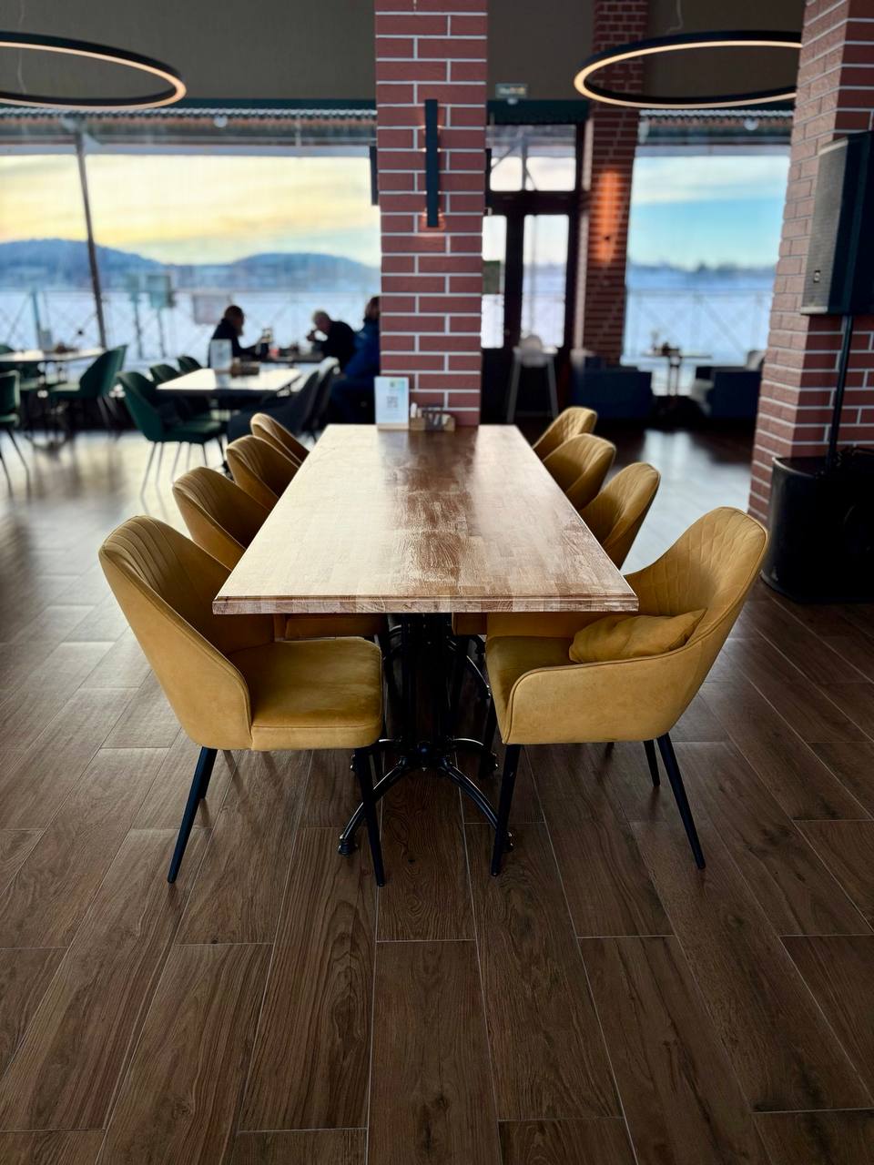 «Приладожье» — это не просто ресторан, а целая история про форель. Рыбу здесь выращивают сами — в прохладных водах Ладожского озера — и подают в фирменном лохикейто с икрой, в пельменях, на гриле и в северных десертах. Панорамные окна смотрят прямо на Ладогу, а за соседним причалом отходят метеоры на Валаам.
